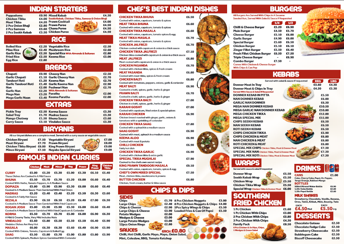Nayabs Take Away Food Shops Menu (Update 2025)