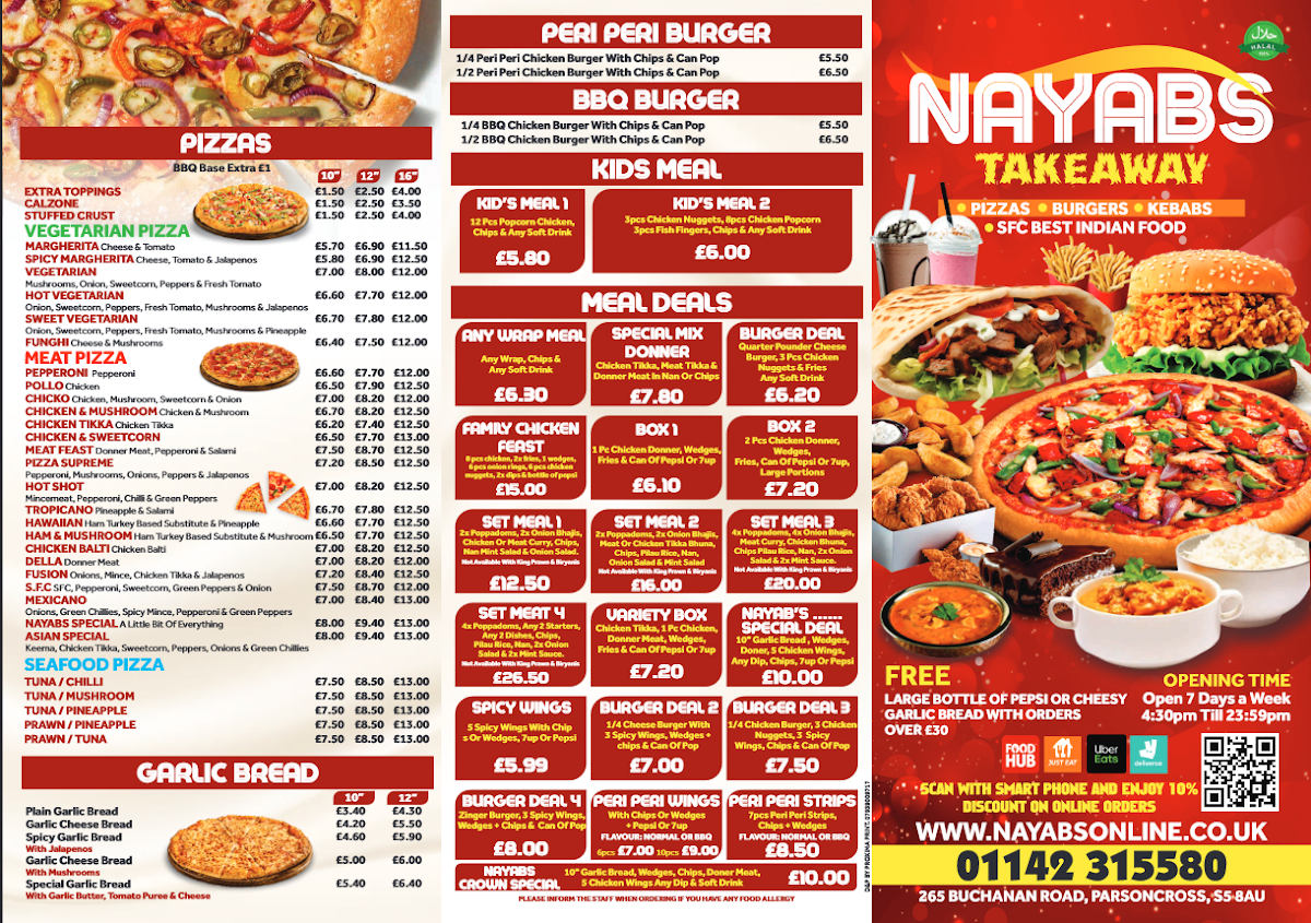 Introducing Nayabs Take Away Food Shops, a culinary gem nestled in Parson Cross, Sheffield, where diverse flavors meet exceptional service. Renowned for its extensive menu, Nayabs boasts a tantalizing array from spicy curries to mouthwatering pizzas and succulent kebabs. Each dish reflects a commitment to quality, making it a favorite among locals and visitors alike.